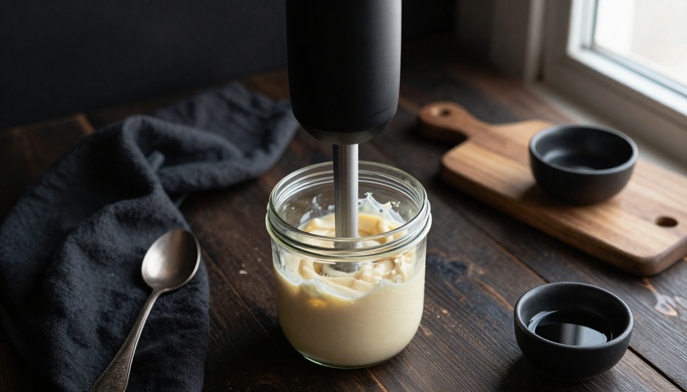✅ Quick Tips: For best results, use room-temperature ingredients and keep the immersion blender fully at the bottom of the jar before turning it on. This helps the mayo emulsify quickly and turn creamy every time.