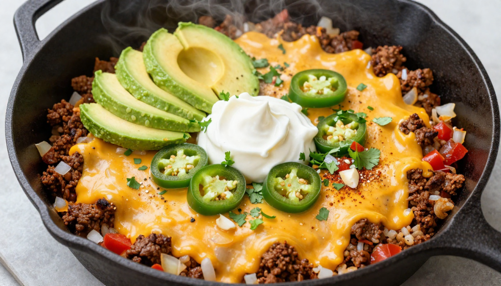 Simmer to Reduce Liquid: After adding the cauliflower rice and broth, let the skillet simmer until the mixture thickens. This keeps your One Pan Keto Taco Skillet hearty, not watery.